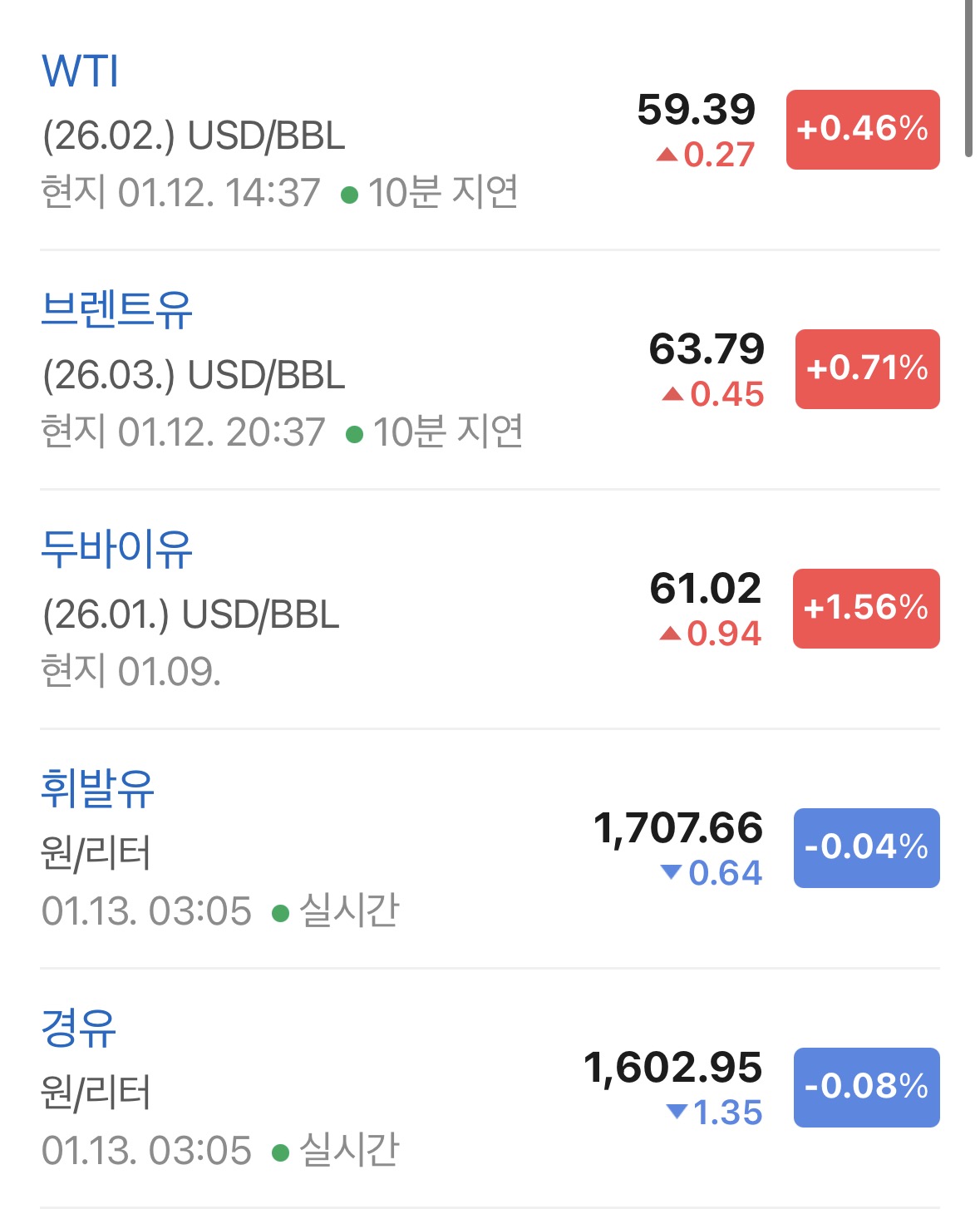 * 국제 유가는 59.39달러로 0.46% 상승하고 있음. 뉴스에는 어제에 이어 이란에 대한 불안을 상승의 원인으로 잡고 있음.