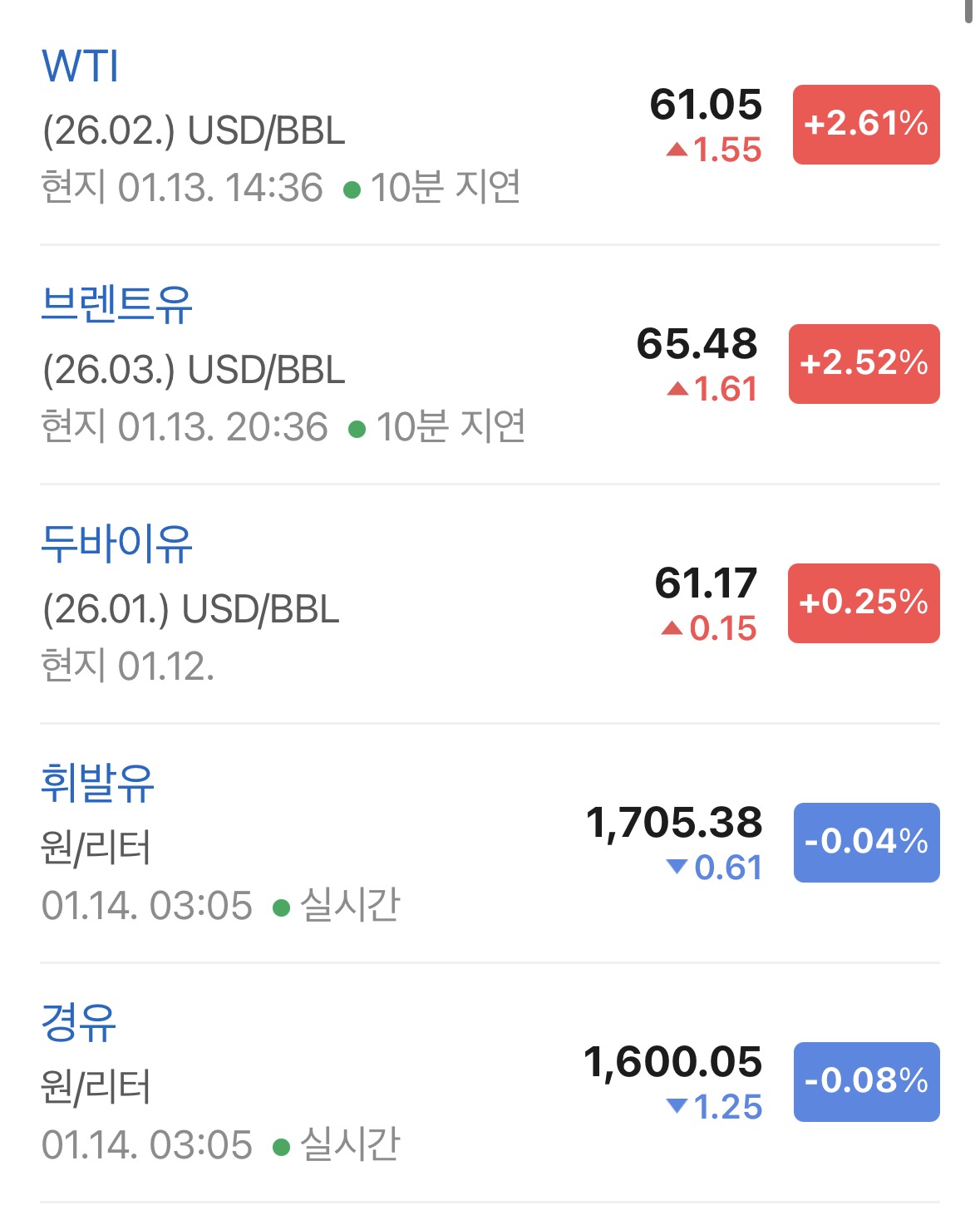 * 국제 유가는 이란에서 미국인들은 떠나라는 경고가 나왔다며 더욱 더 이란 이슈를 적용하고 있음. WTI 기준으로 61.05달러가 되며 2.61% 상승하고 있음.