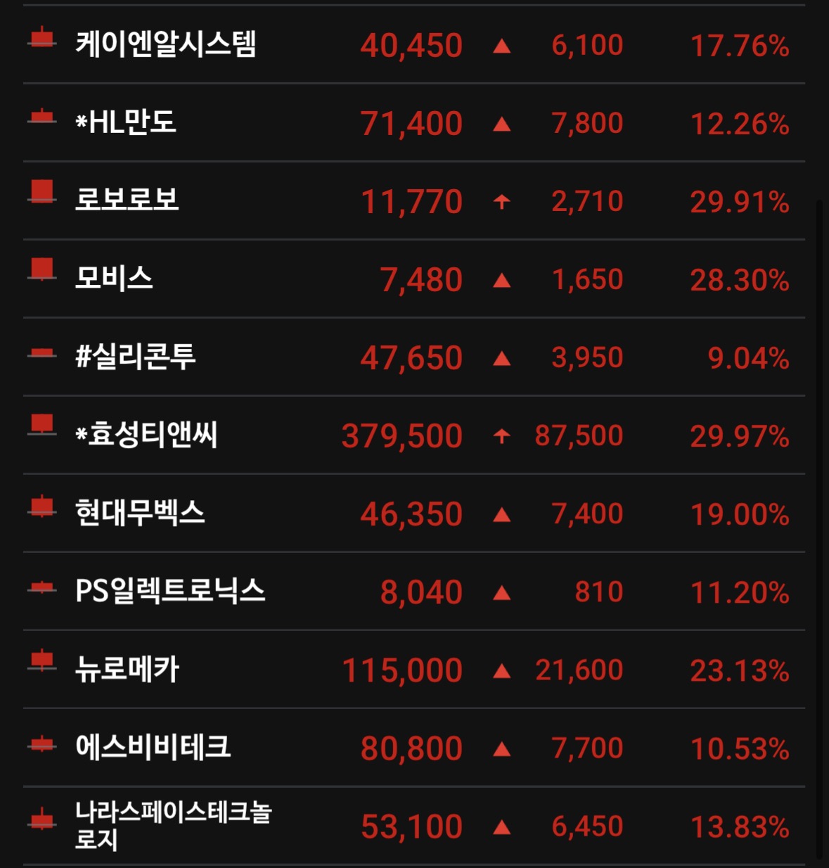 * 이유: 로봇 상용화 가속도. 현대차의 강세가 로봇 섹터 전반에 훈풍을 불어넣었습니다.