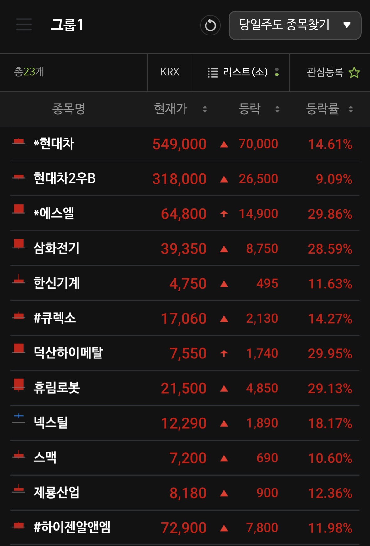 Q2. 다음 중 오늘 상한가(약 30% 상승)를 기록한 종목이 아닌 것은?
