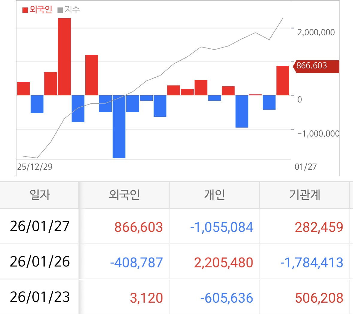코스피에서는 외국인이 8,666억 원 순매수하며 시장이 아직 살아 있음을 보여줬고, 기관도 2,825억 원 매수로 힘을 보탰다.