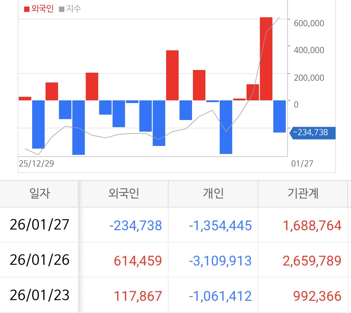 코스닥에서는 외국인이 2,347억 원 순매도했지만, 기관이 무려 1조 6,888억 원을 순매수하며 주도권을 가져가는 모습이 나왔다.