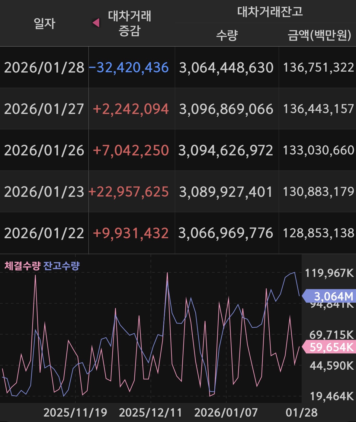 특히 코스닥 쪽에서 꽤 압박을 받는 모습이지만, 금액 자체의 급격한 변화는 없다.