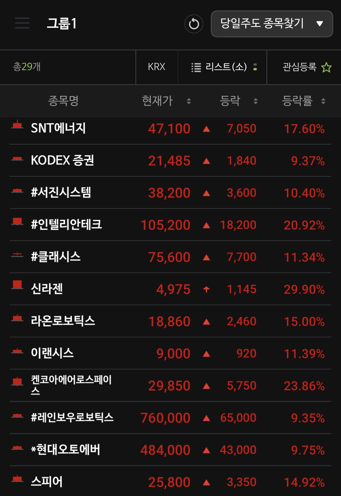 오늘처럼 **섹터 전체가 움직이는 날(우주항공, VC 등)**은 해당 산업에 돈이 몰리고 있다는 강력한 신호입니다. 오늘 수익을 보셨다면 축하드리고, 놓치셨다면 이 흐름이 내일도 이어지는지 관찰해보시면 좋겠습니다.
