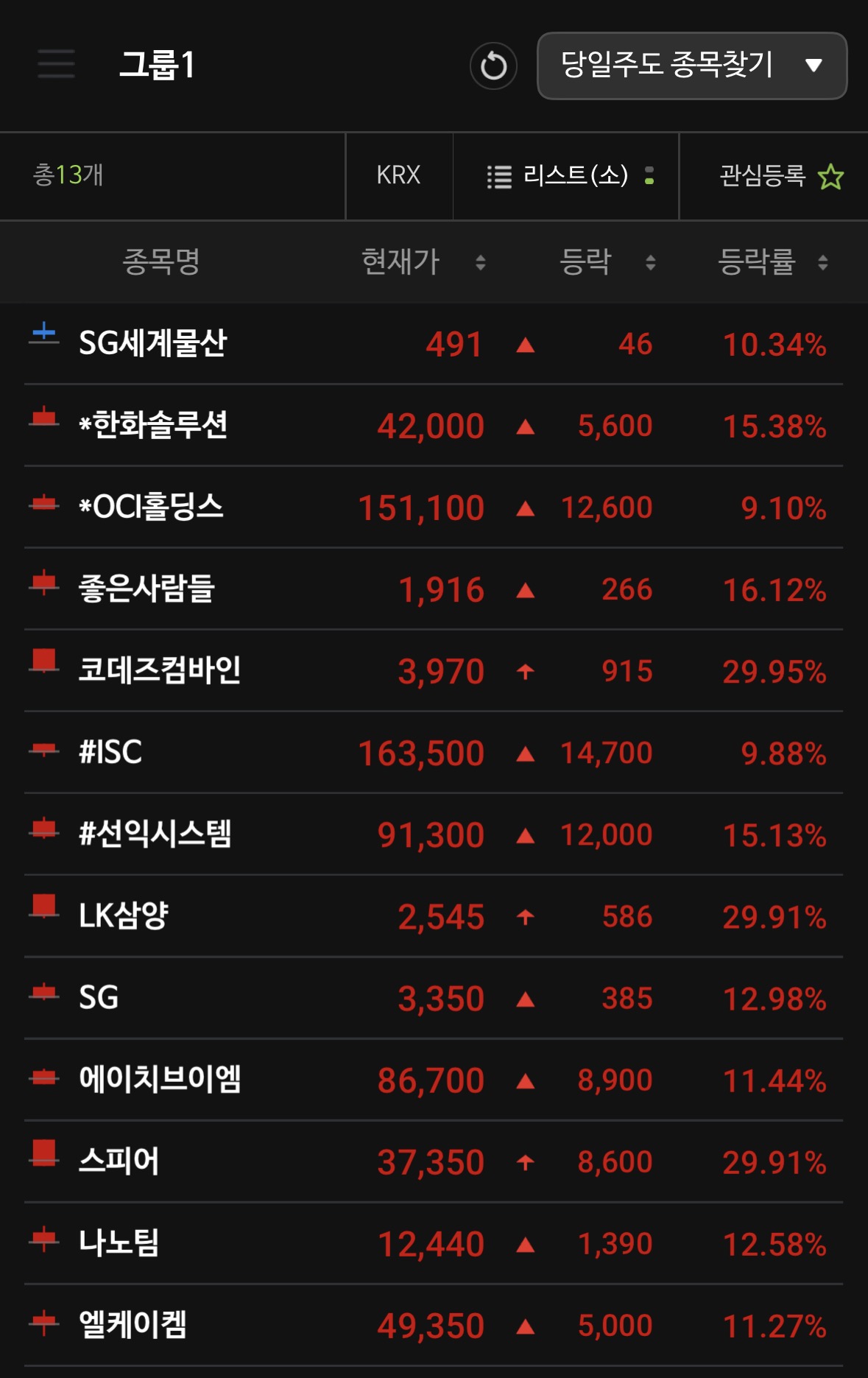* 개별 호재 및 상한가 종목