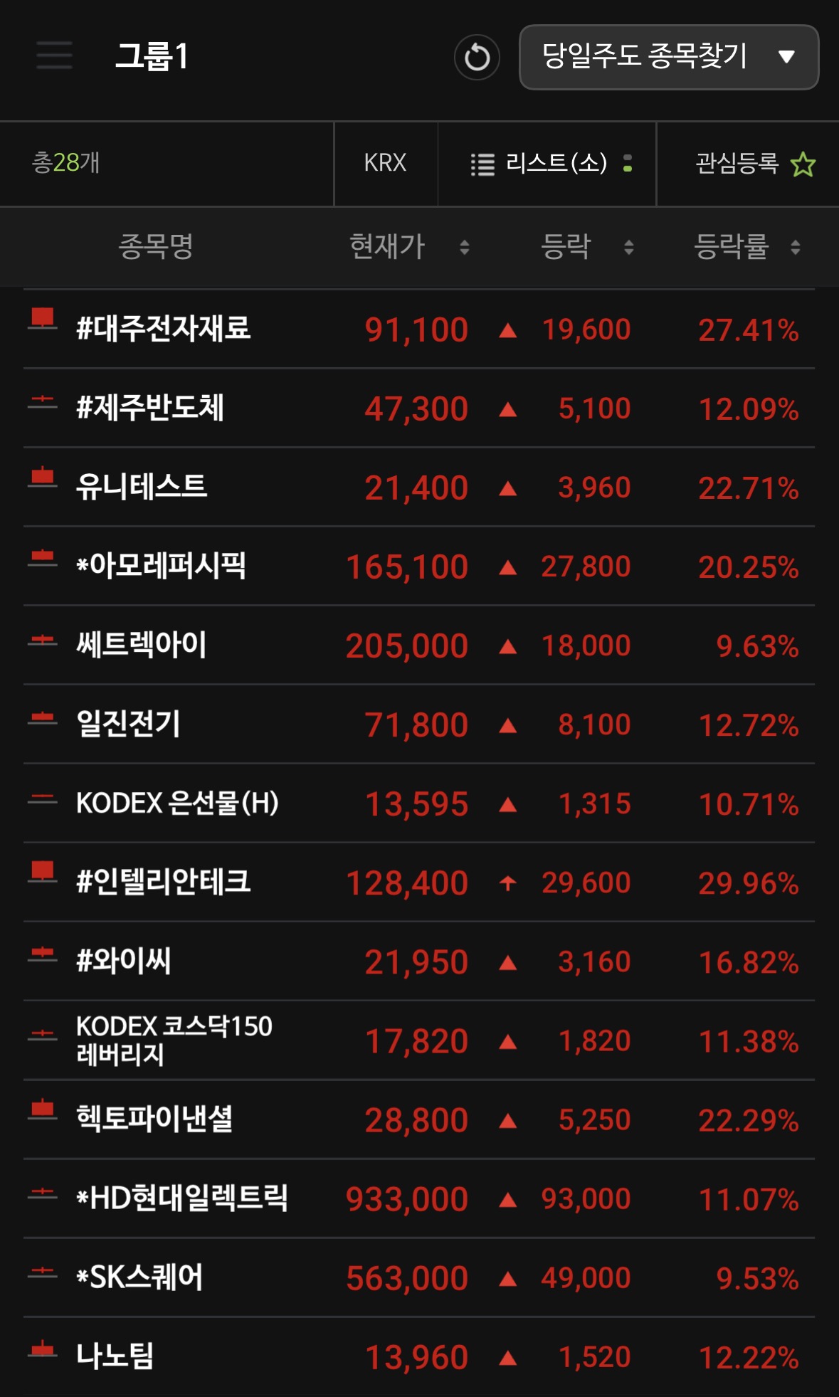 이 종목들 중 특정 섹터의 차트 분석이나 기업 상세 분석이 필요하신가요? 말씀해 주시면 바로 도와드리겠습니다!