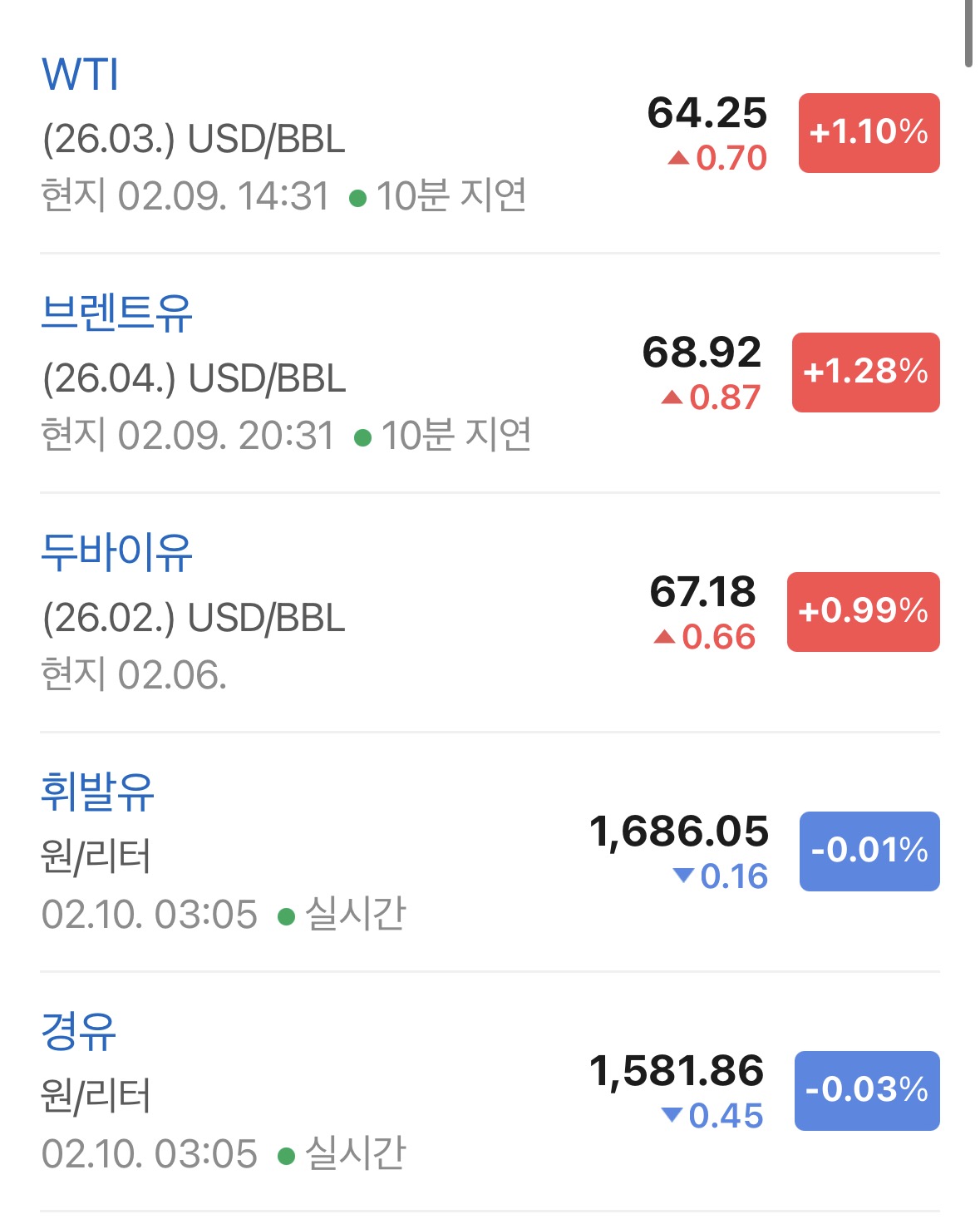 WTI 기준 64.25달러, +1.1% 상승.