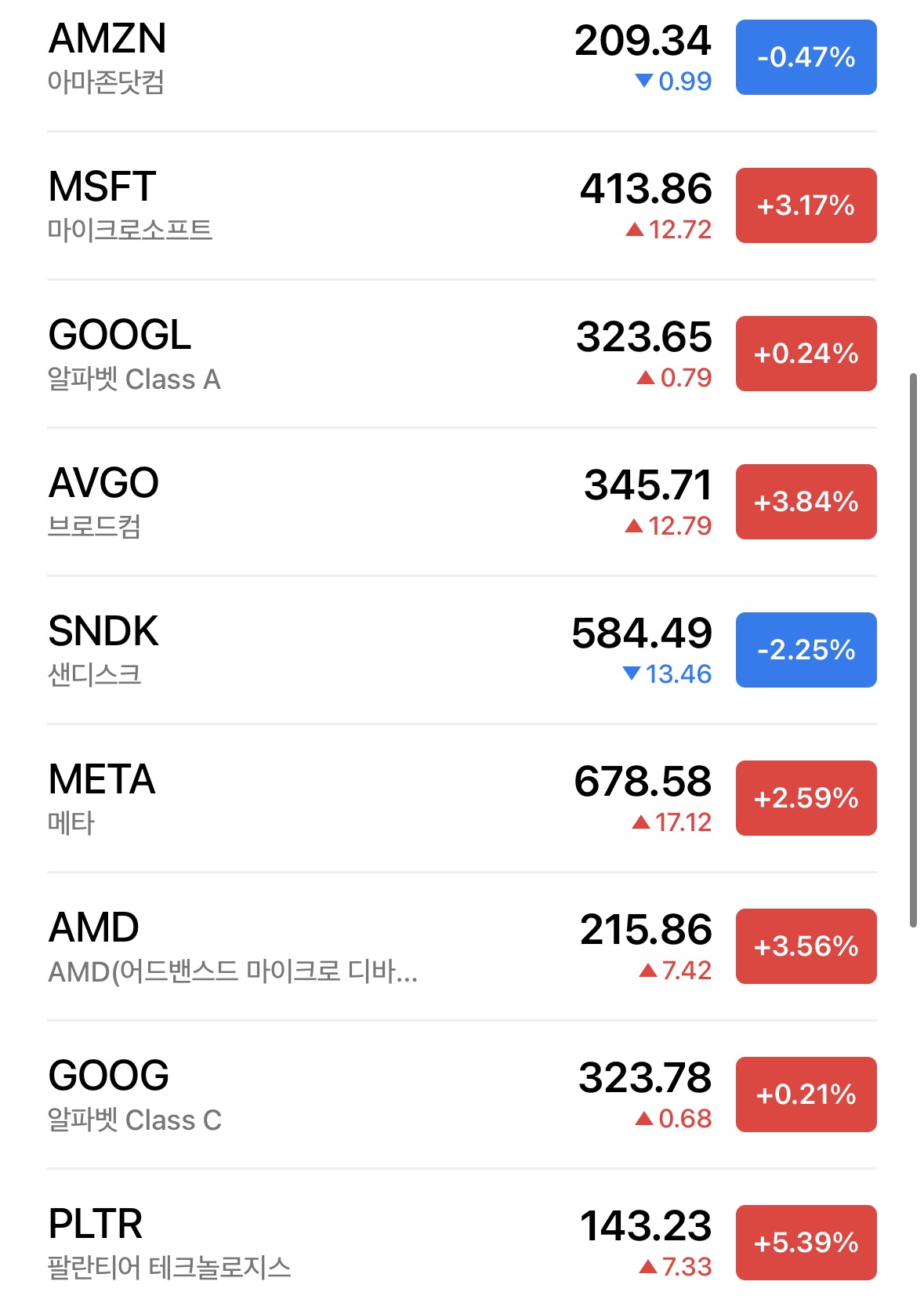 단기 조정은 있었지만, 시장의 시선은 여전히 AI·반도체 쪽에 머물러 있음을 확인한 하루.