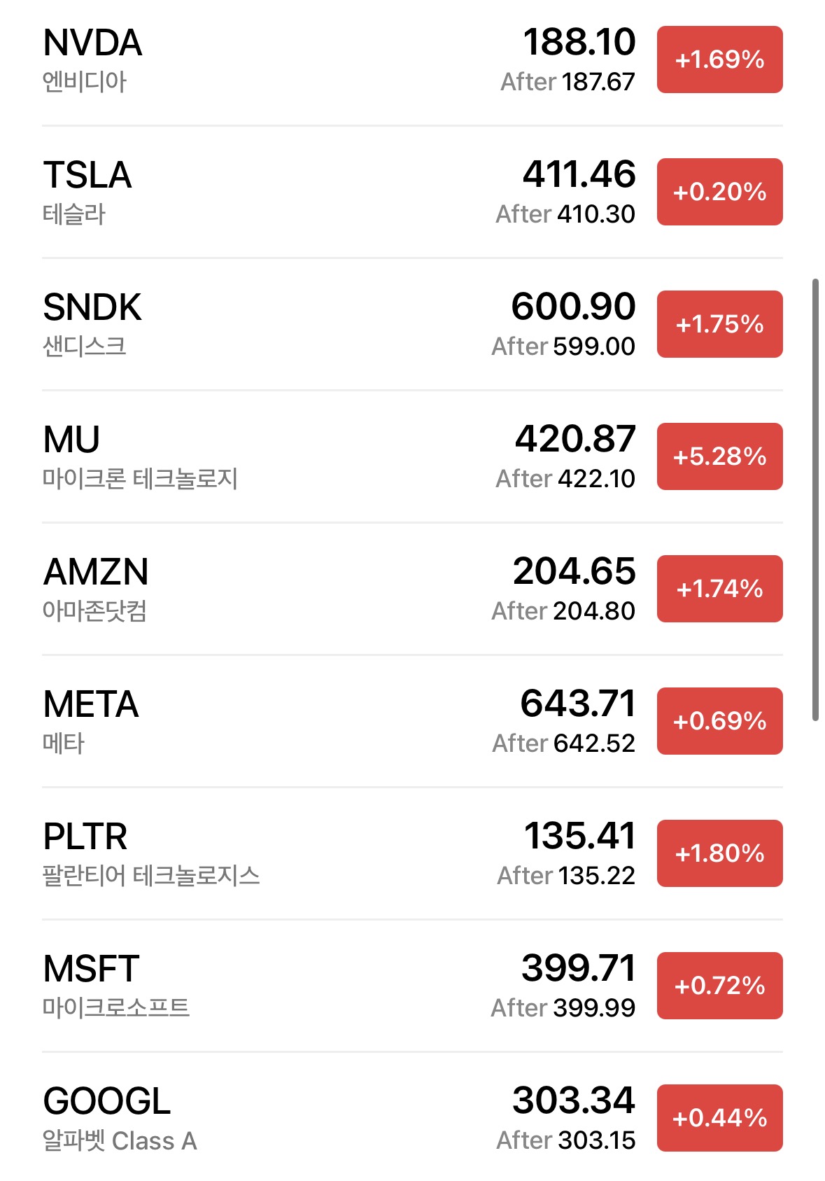 특히 마이크론 +5.28% 상승하며 반도체 분위기를 끌어올렸고, 전반적인 기술주가 회복 흐름을 보였습니다.