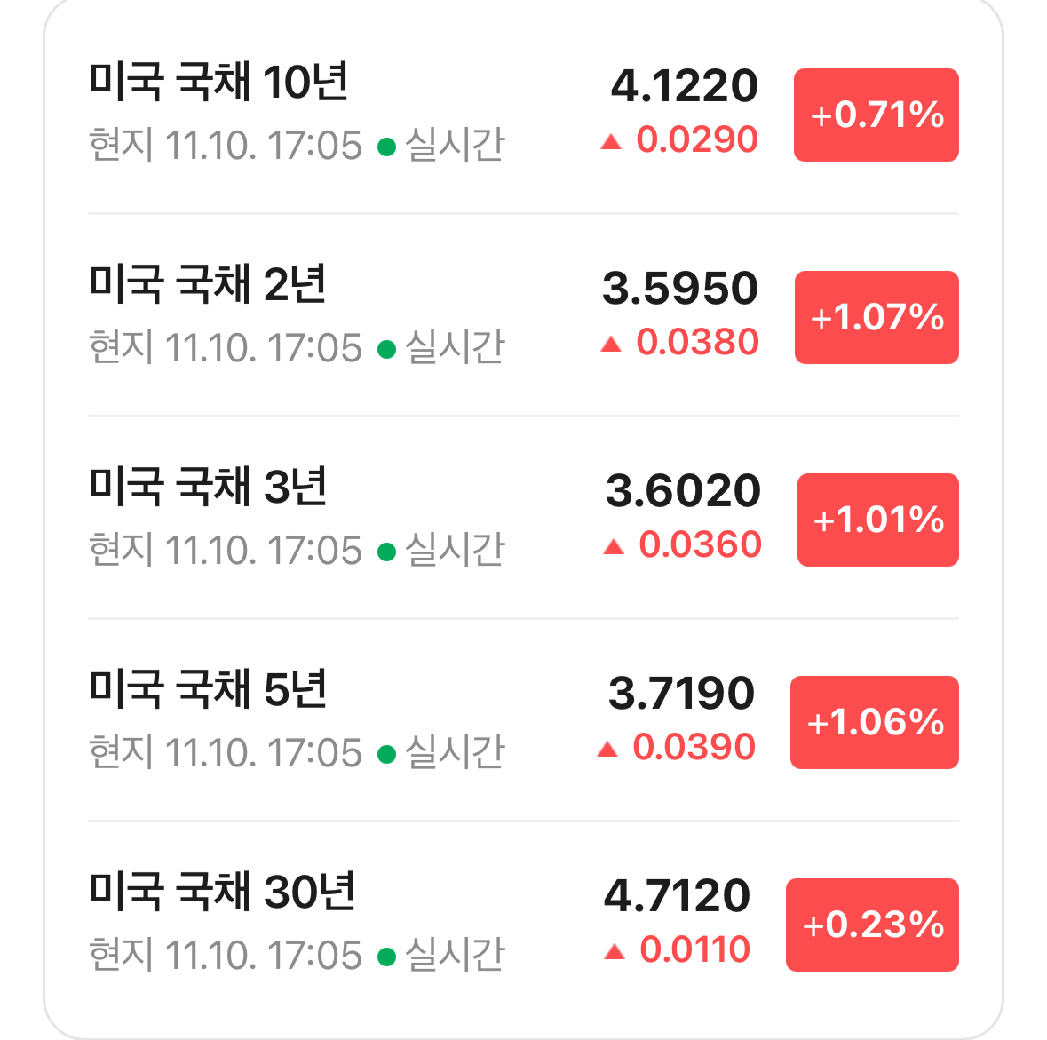 * 나스닥은 0.2% 하락이 진행되고 있음. AI 거품을 걱정하며 엔비디아 2.47% 하락에 AMD 2.3, 데이터센터 발 수익성 걱정에 코어위브 15.49%, 마이크론 테크놀로지도 4.34% 하락하고 있음.