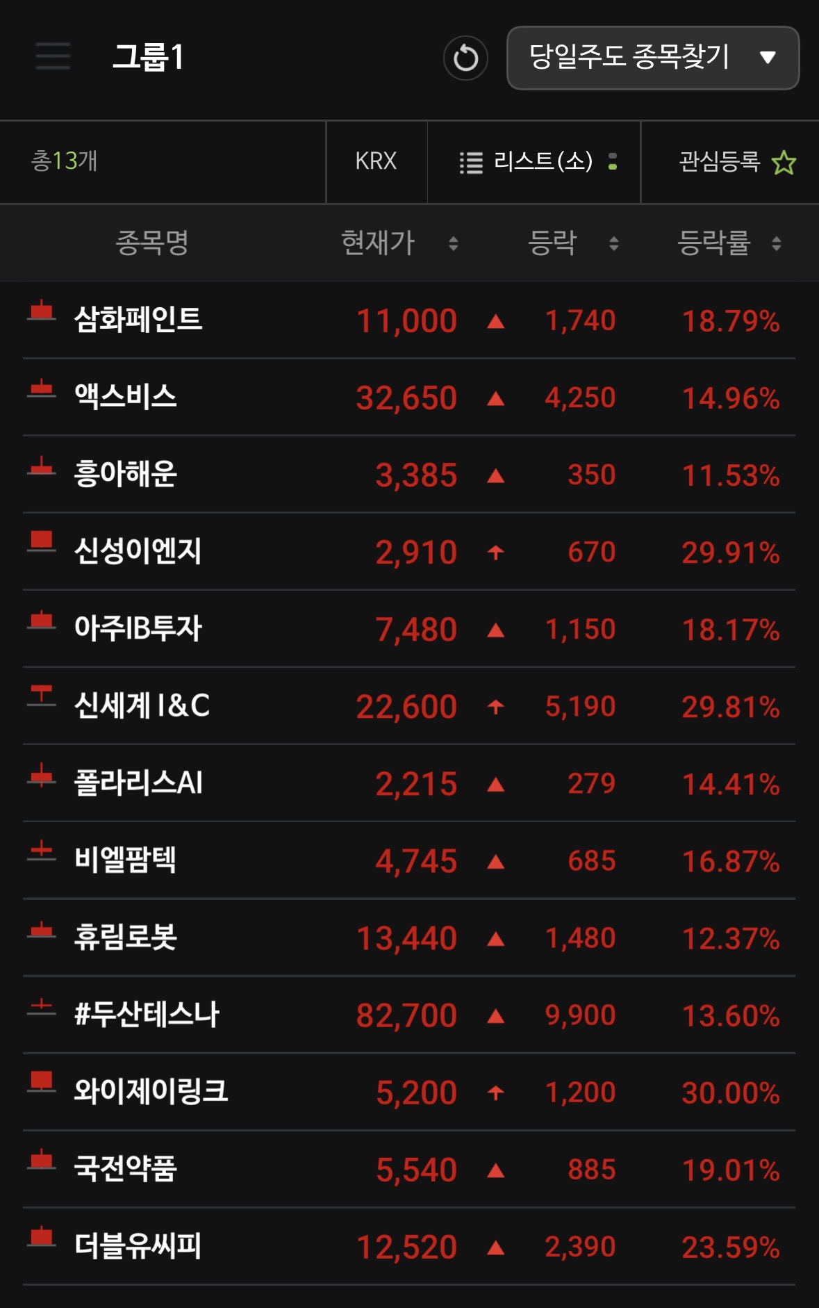| 두산테스나 | 13.60% | 반도체 후공정(OSAT) 테스트 수요 폭증. 삼성전자 등 주요 고객사의 가동률 상승과 AI 반도체 테스트 물량 확보 소식이 호재로 작용했습니다. |