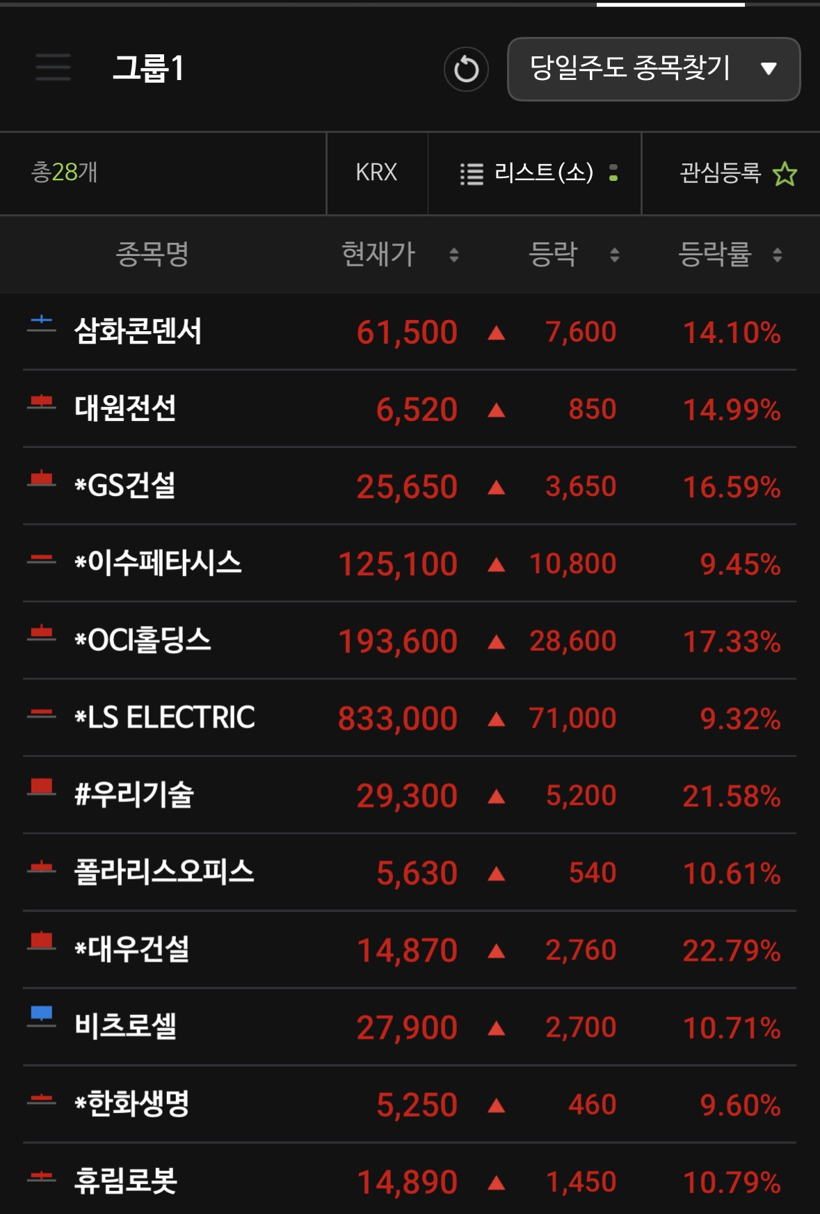 * GS건설 (+16.59%) / 대우건설 (+22.79%): 해외 원전 및 대규모 인프라 수주 기대감과 저평가 해소 국면.