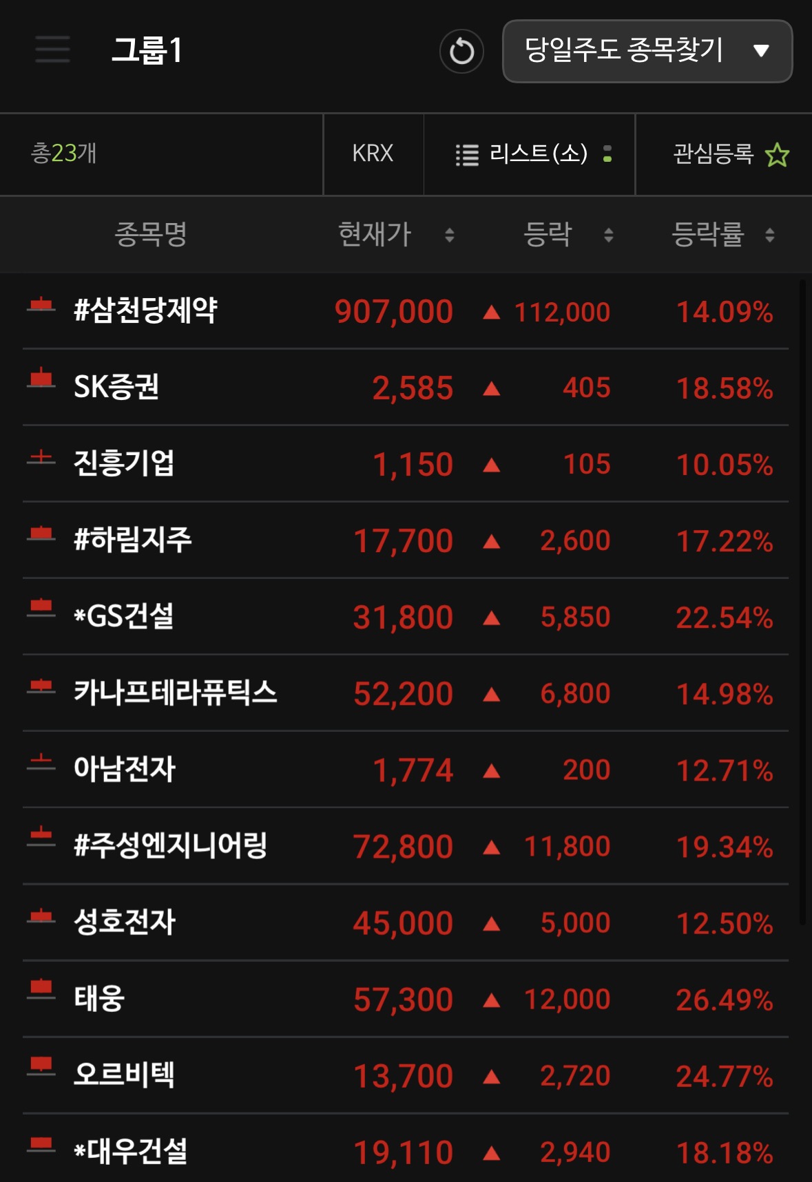 올려주신 이미지 속 종목들은 2026년 3월 말~4월 초의 시장 상황을 강력하게 반영하고 있습니다. 특히 제약/바이오, 원자력/에너지, 그리고 건설 섹터의 움직임이 두드러지네요.