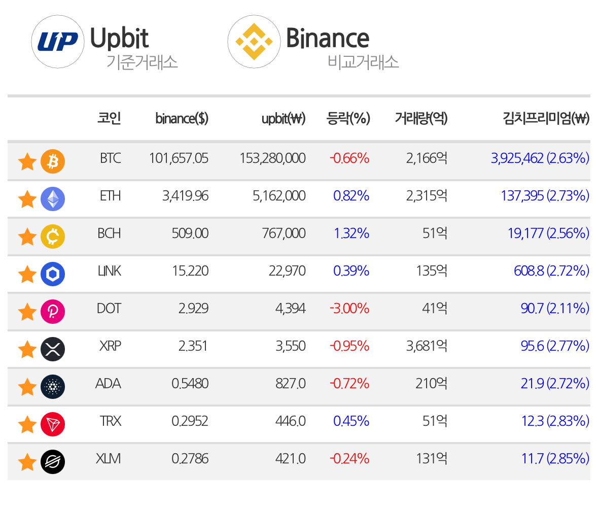 * 비트코인은 1억 5,328만원에 도착하며 0.66% 하락하였음. 김프는 2%대로 잔잔한 모습.