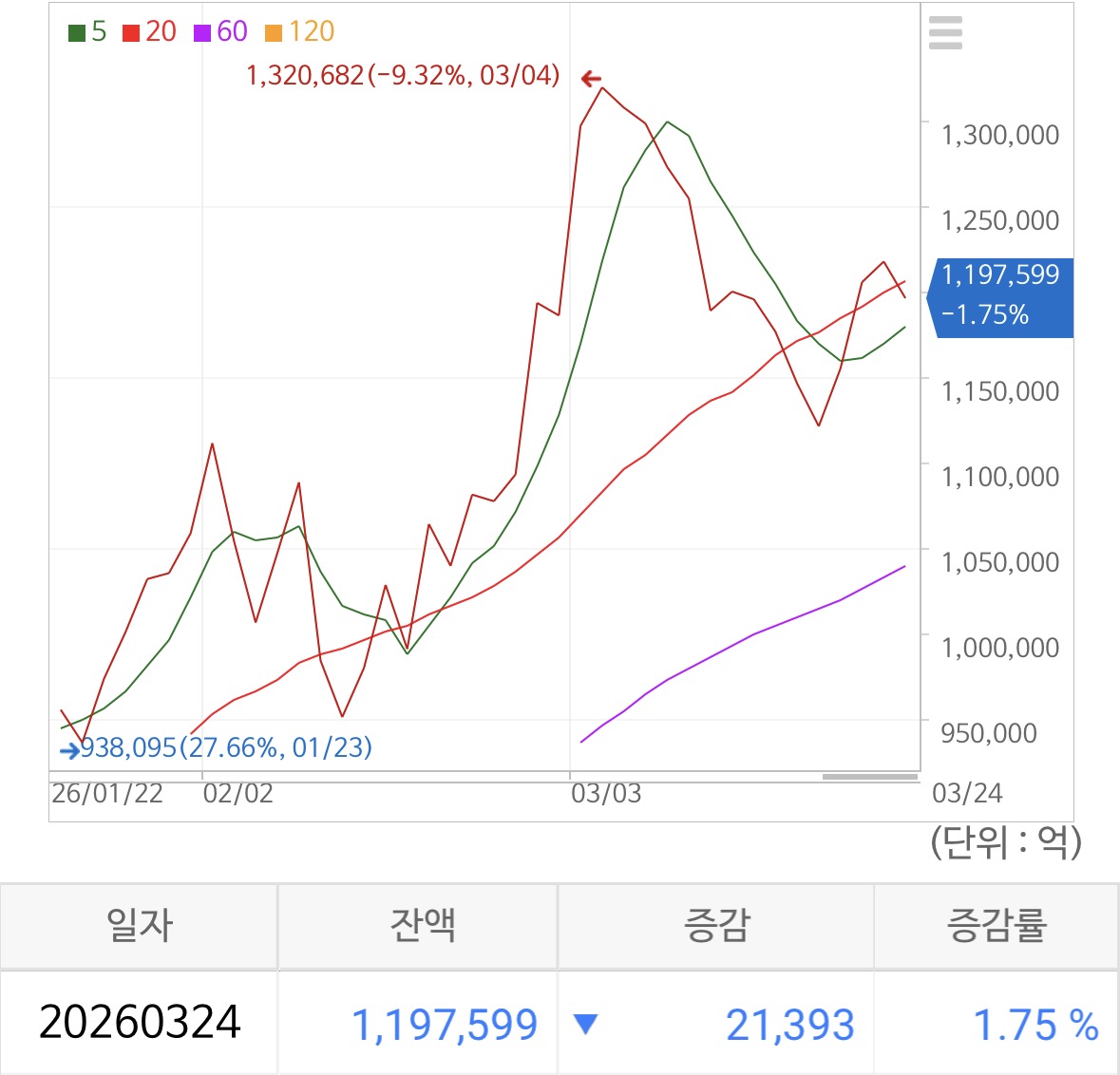 • 하루 +4.5조 증가