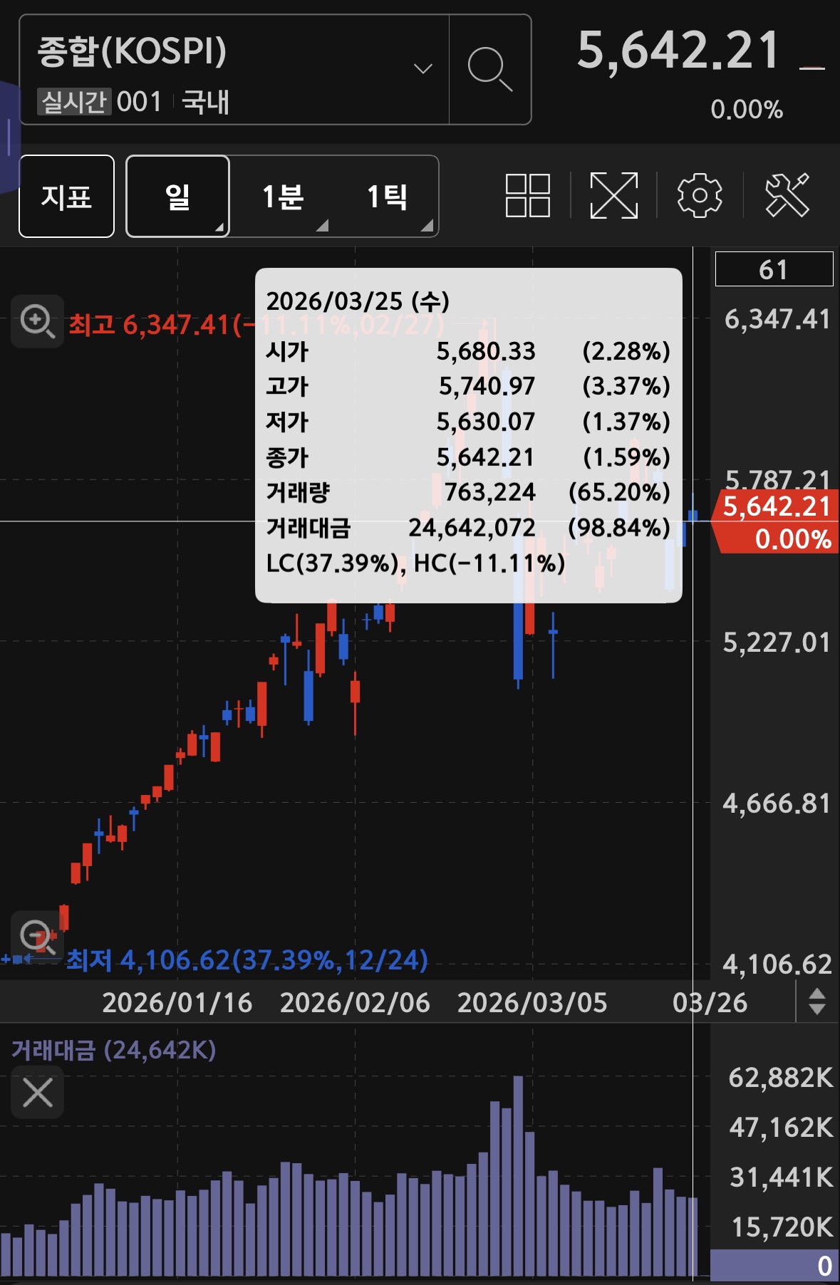 • 코스피: 24.6조 (- 감소, 3일 연속 감소)