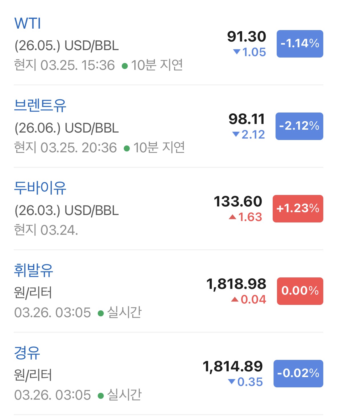 • WTI: 91.3달러 (-1.14%)