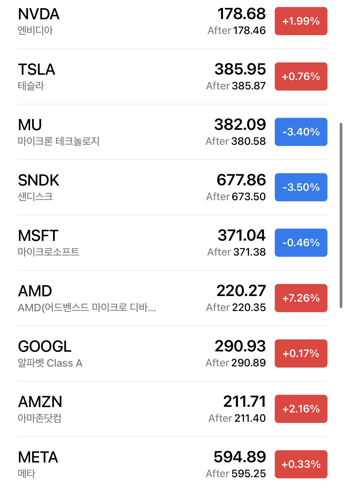• 마이크론 -3.4%, 샌디스크 -3.5% 하락