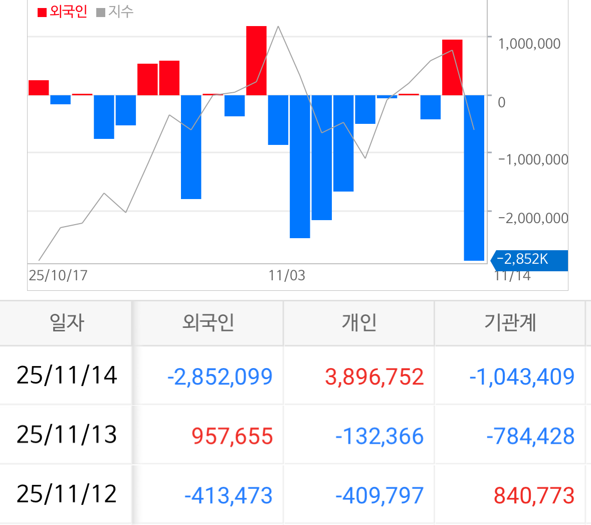 * 지난 금요일 코스피에서는 버거형이 2.85조 가량을 팔며 국장을 탈출하는 모습. 지난 11월초보다 더 많은 물량을 매도하였음. 기관형도 1조로 한 손 거드니 시장은 나락으로 깊게 빠져들었음.
