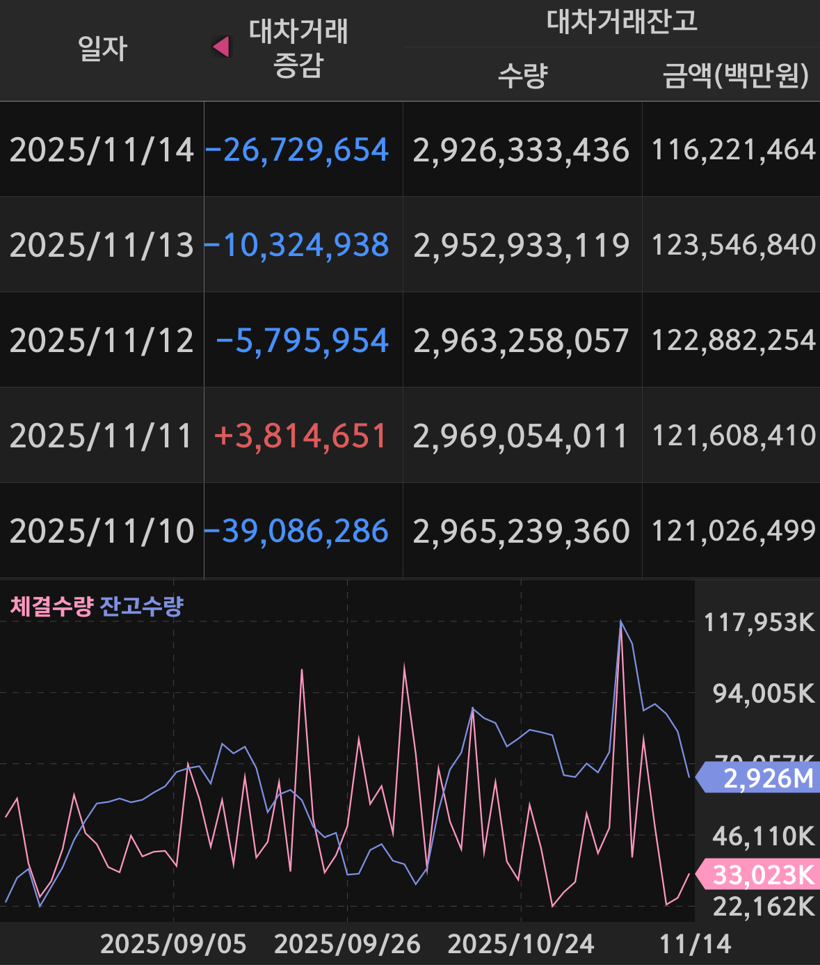 * 지난 금요일 버거형이 크게 도망쳤다는 이유만으로도 매도량이 너무 많으니 당분간 몸을 사려야 겠음. 대차 잔고를 기준으로 본다면 지난번처럼 매도가 연속기 콤보로 두서너번 나올 수도 있으니 계획안에 없는 하락이라면 물타기도 조심해야 할 듯.