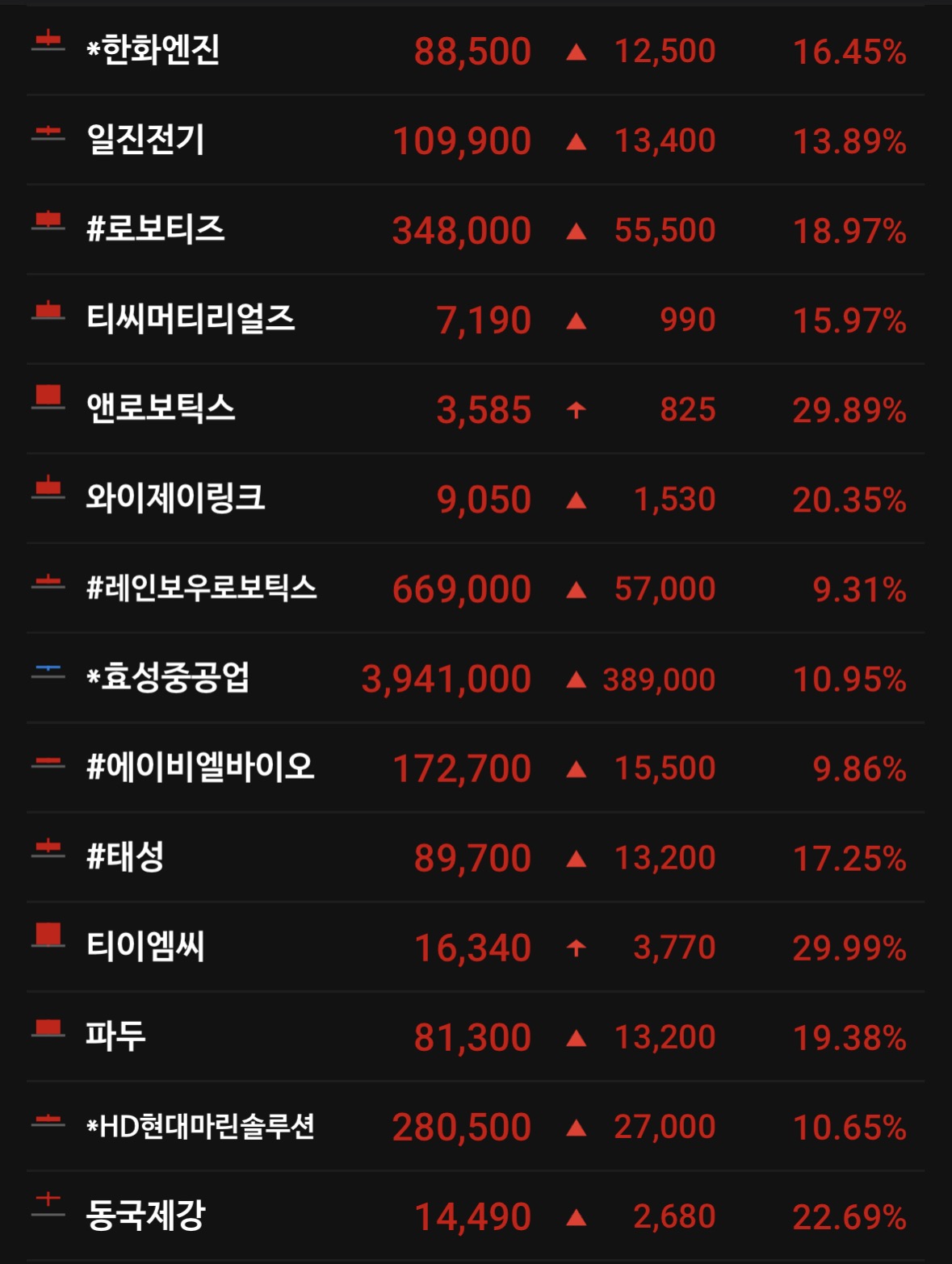 * **로보티즈:** 테슬라, 보스턴다이내믹스 등 글로벌 기업들의 로봇 양산이 임박함에 따라 핵심 부품인 **액추에이터(구동기)** 수요가 폭발할 것이라는 전망에 상한가 수준의 강세를 보였습니다.