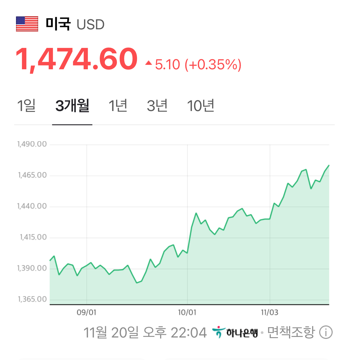 * 원/달러 환율은 또 다시 고점을 갱신하며 더욱 더 상승하는 중. 1,474원까지 올라옴.