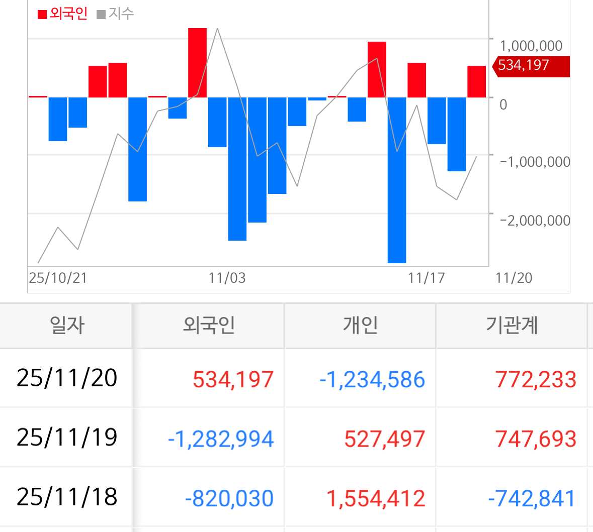 * 어제 코스피에서 버거형은 5,342억 매수하였고 기관형도 7,722억 매수로 양매수의 흐뭇한 모습.