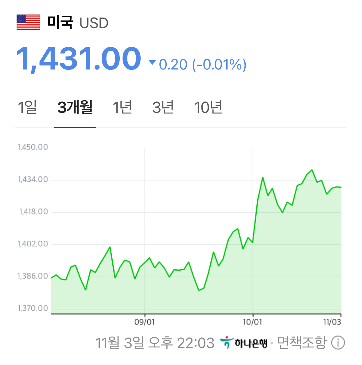 * 원/달러 환율 또한 1,431원으로 거의 변동이 없음.