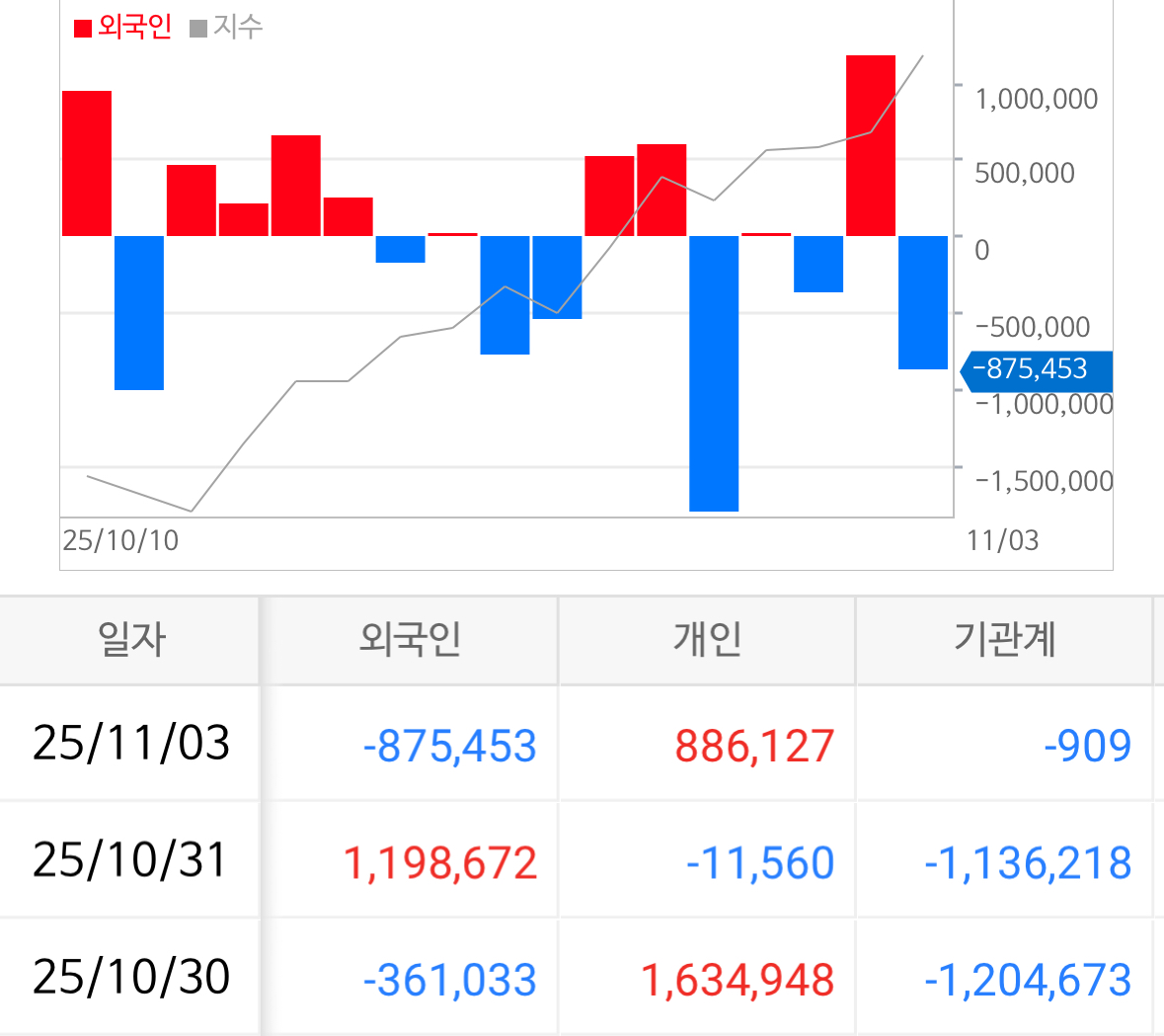* 어제 코스피에서 버거형은 8,755억 가량을 매도하였음. 기관형은 9억 매도로 매우 혼란한 숫자로 집계됨.