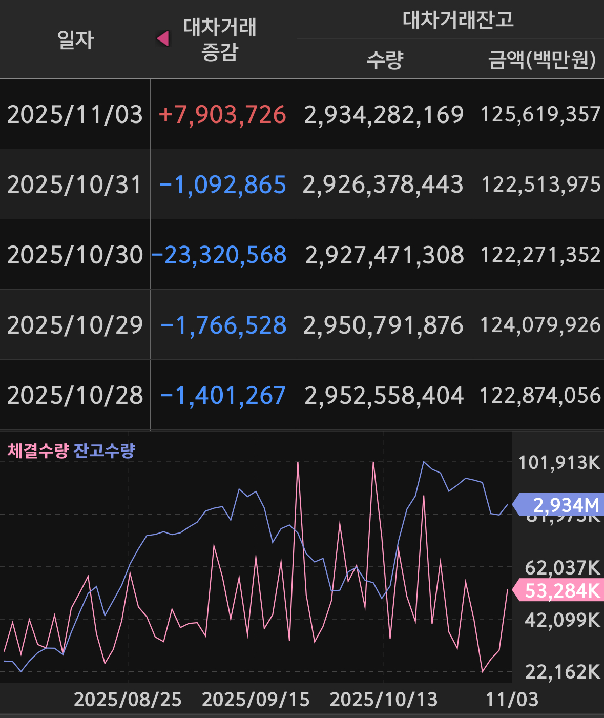 신용 잔고는 25.5조 가량으로 1.01% 더 오르며 가파른 상승 투심을 보여주고 있음.