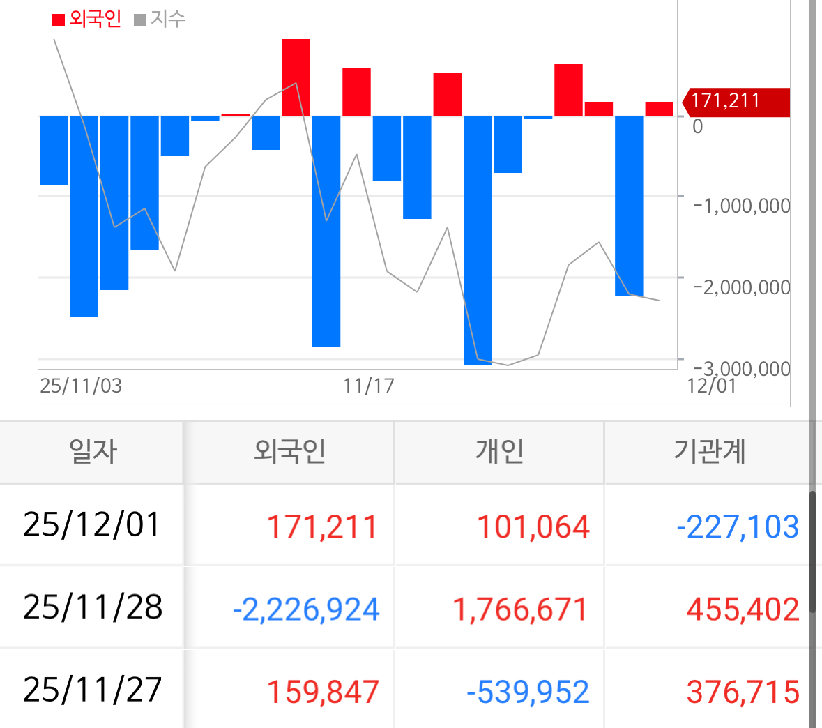 * 어제 코스피에서 버거형은 1,712억을 매수하였고 기관형은 2,271억을 매도하였음.