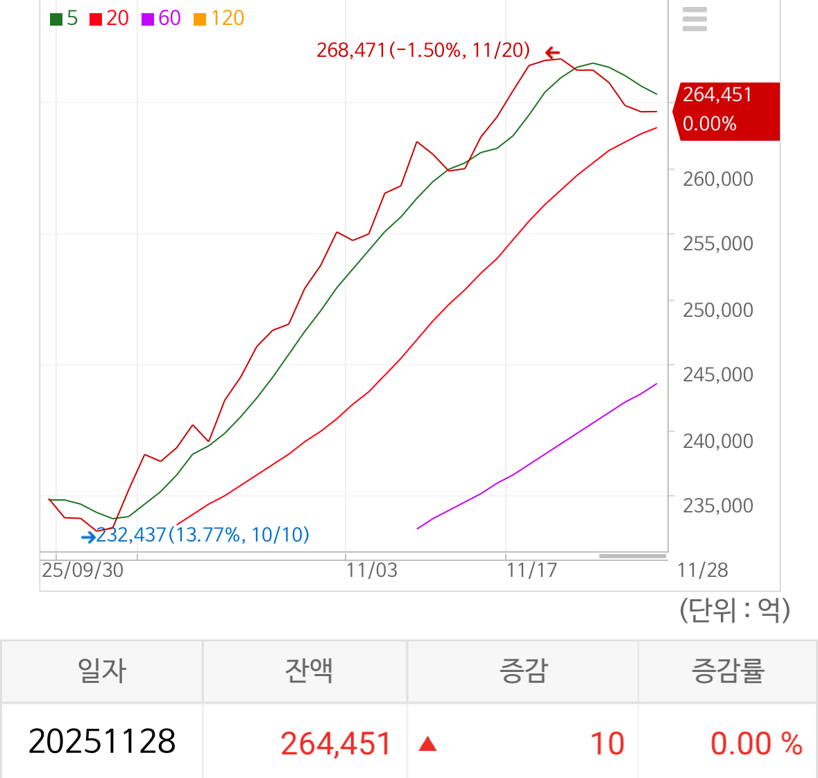 신용 잔고는 26.4조 가량으로 증감이 거의 없는 모습.
