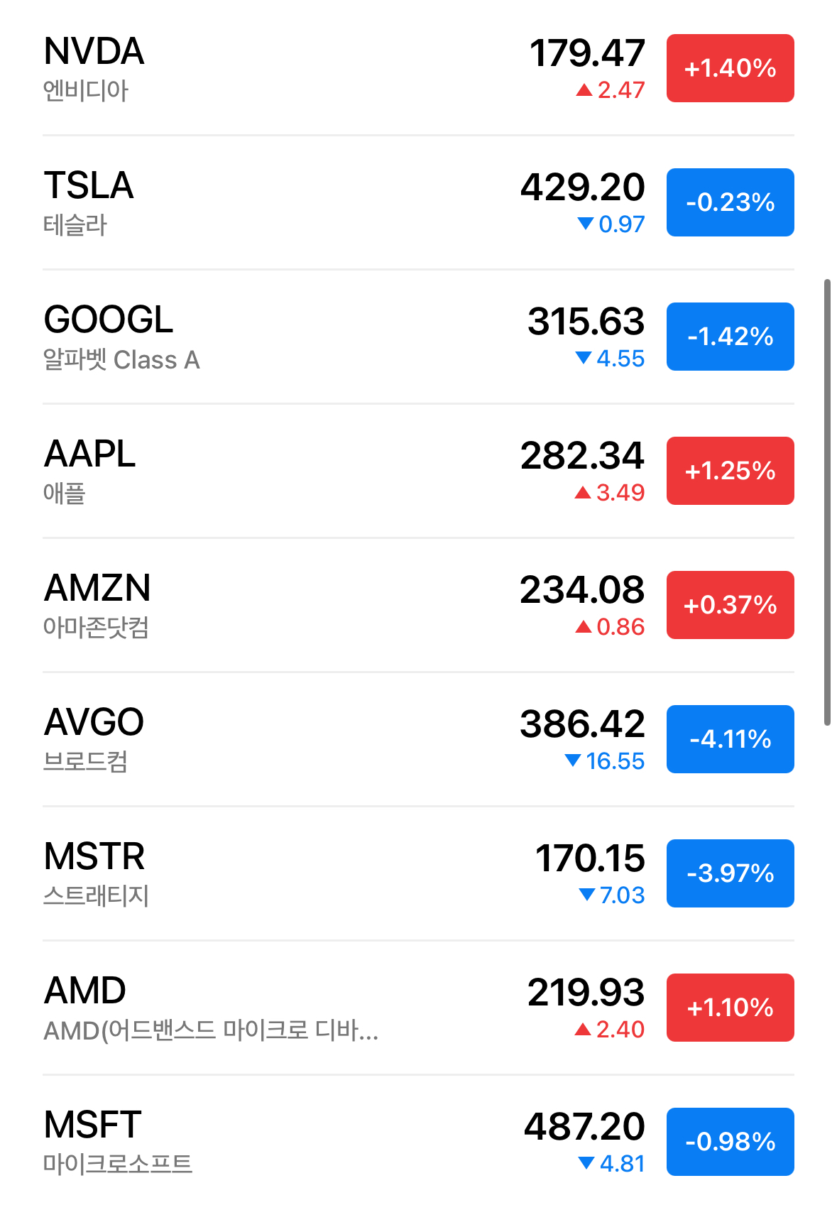 * 나스닥은 0.28% 하락으로 마무리되어 가고 있는 중. 대부분의 종목이 크게 흔들리지 않고 있었지만 비트코인을 팔지 고민하고 있다는 MSTR이 3.97% 떨어지고 있음. 브로드컴도 4.11% 하락 중.