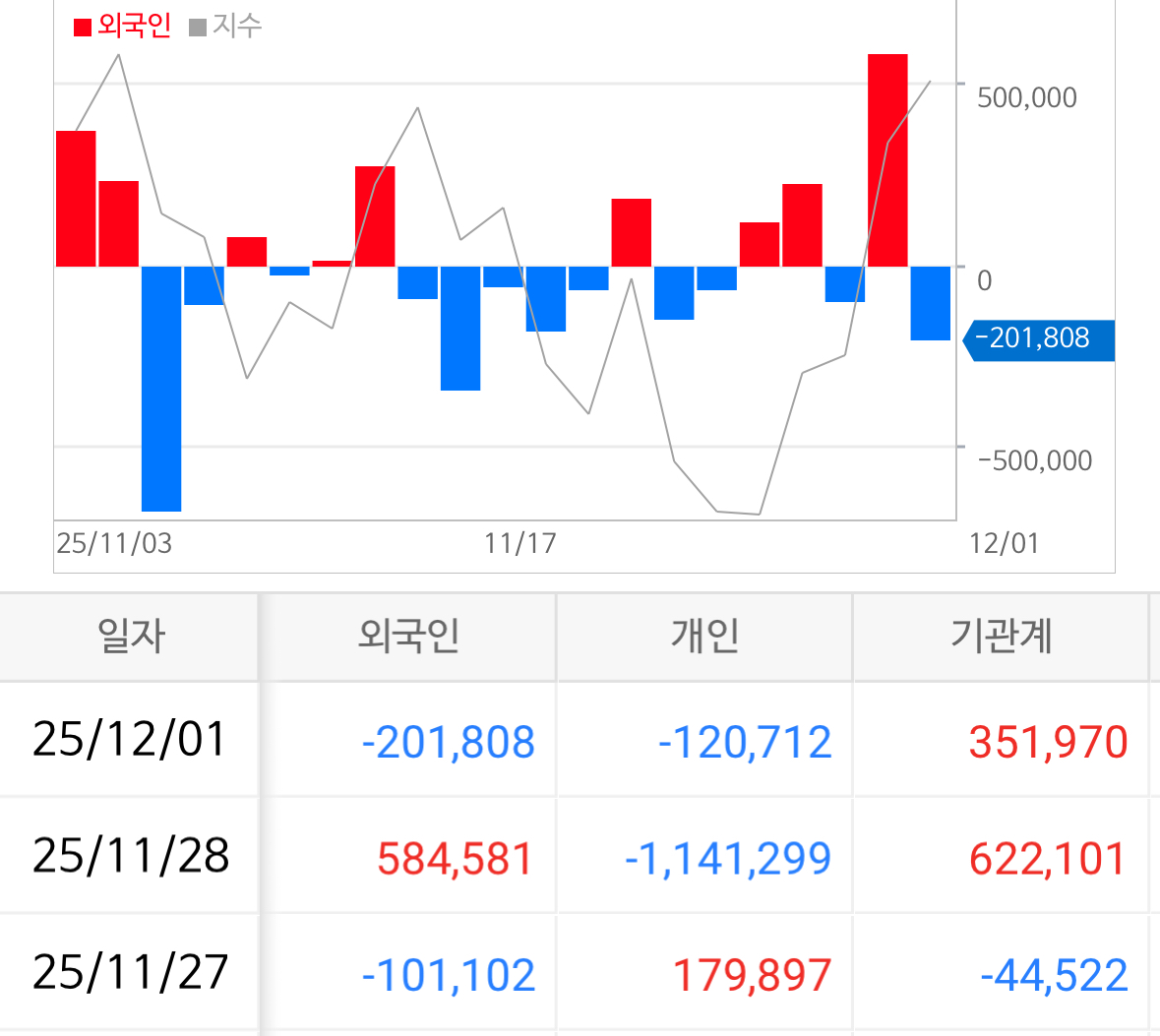 코스닥에서 버거형은 2,018억이나 매도하였지만 기관형이 3,520억을 매도하며 케어하는 모습.