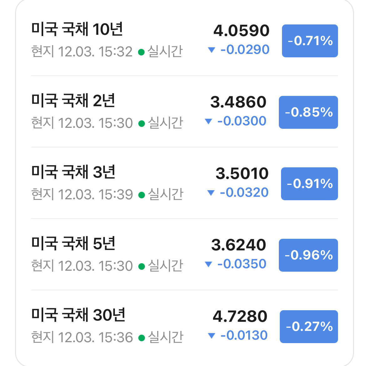 * 미국 국채 금리는 소폭 하락이 나옴. 장단리차는 0.533 포인트가 되었음.