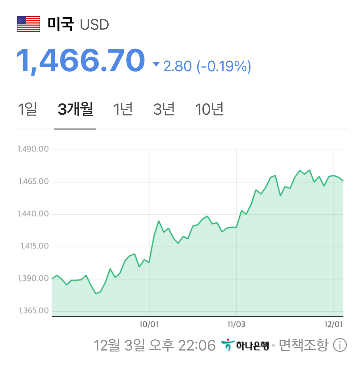 * 원/달러 환율은 1,466원이 되며 작은 하락을 이어가는 모습.