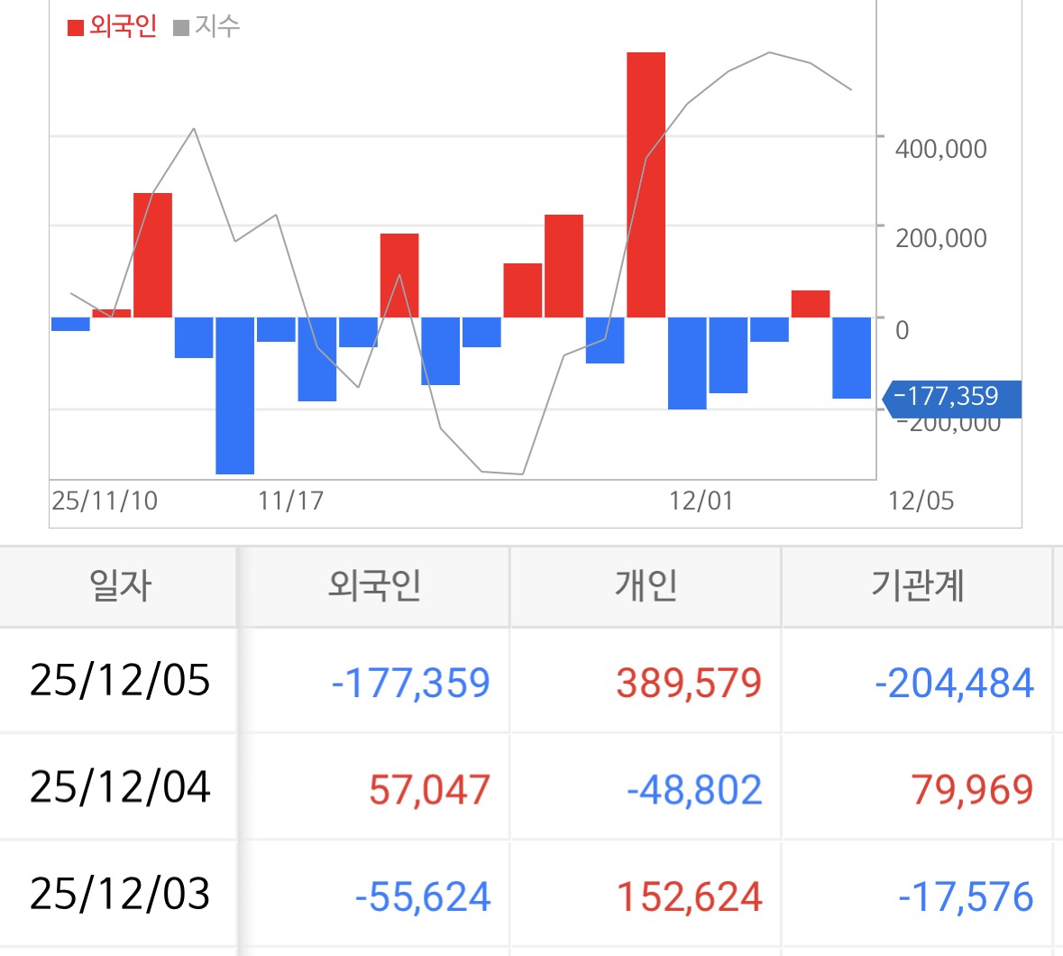 코스닥에서 버거형은 1,774억을 매도하였고 기관형도 2,045억을 매도하며 2일째 팔아버리는 모습.