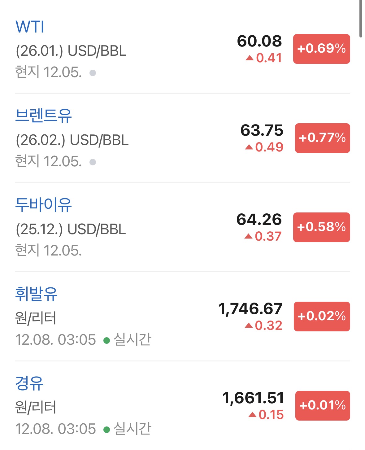 * 국제 유가는 WTI 기준으로 0.69% 상승하며 60.08달러가 됨. 러시아와 베네수엘라의 원유 공급에 대한 걱정때문이라고 함.