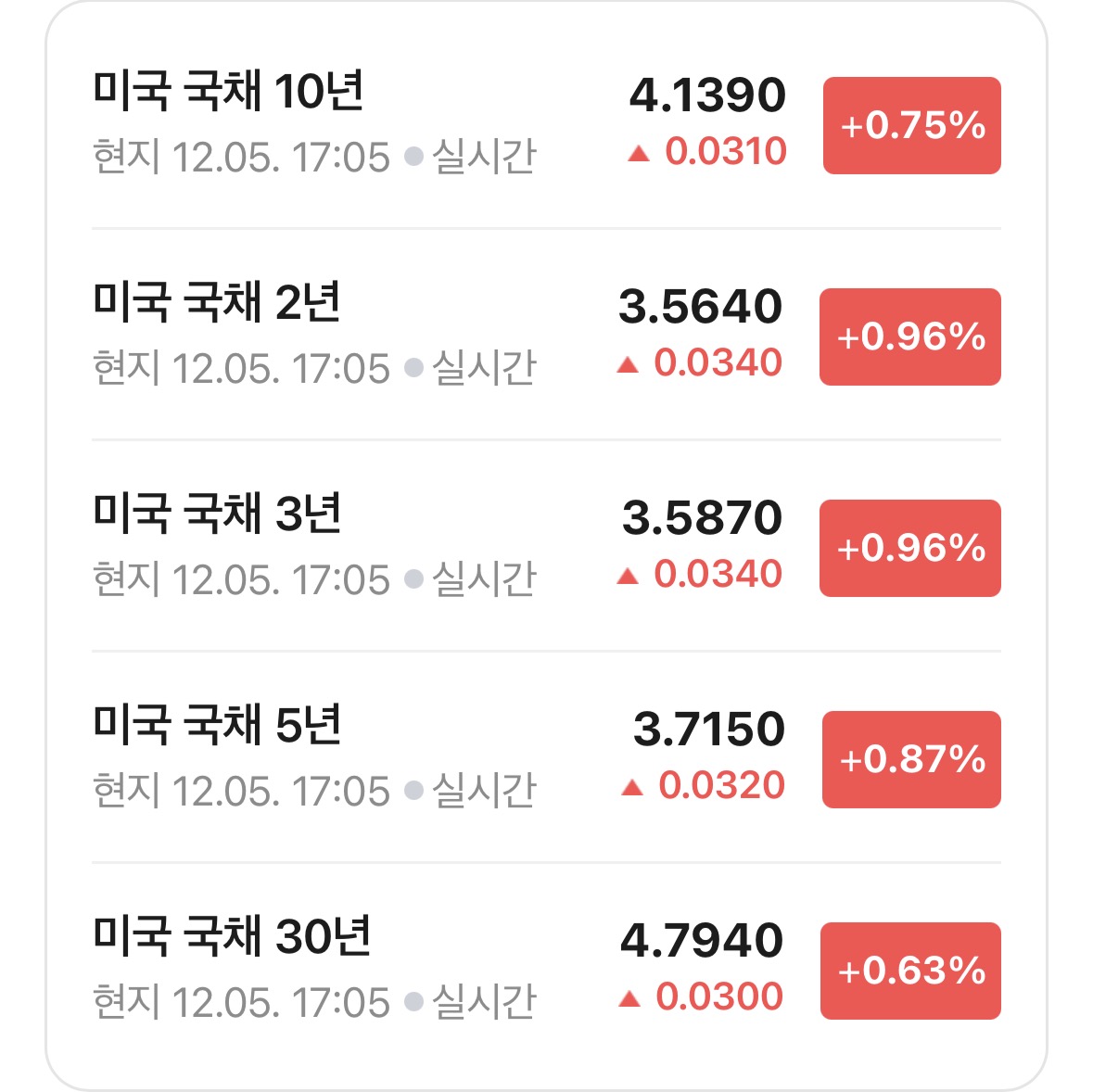 * 미국 국채 금리는 1%가 안 되는 상승이 이어짐. 장단리차는 0.575 포인트가 되었음.
