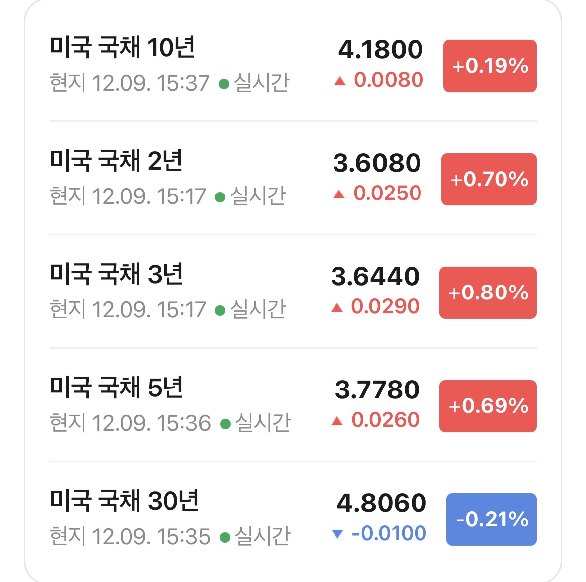 * 미국 국채 금리는 아리송한 분위기에 2년물만 약간 올랐음. 장단리차가 0.572 포인트가 됨.
