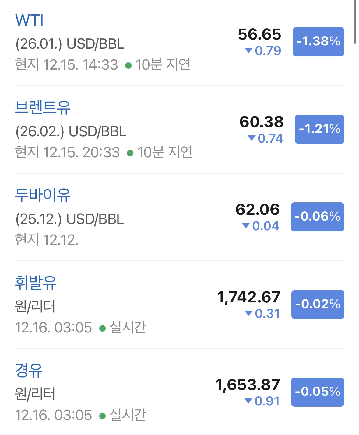* 국제 유가는 하락하였음. 베네수엘라 이슈가 있으며 원유공급이 쉽지 않게 되리라 예상하는데 유가는 하락하고 있음. WTI 기준으로 56.65달러가 되며 1.38% 하락하고 있음.