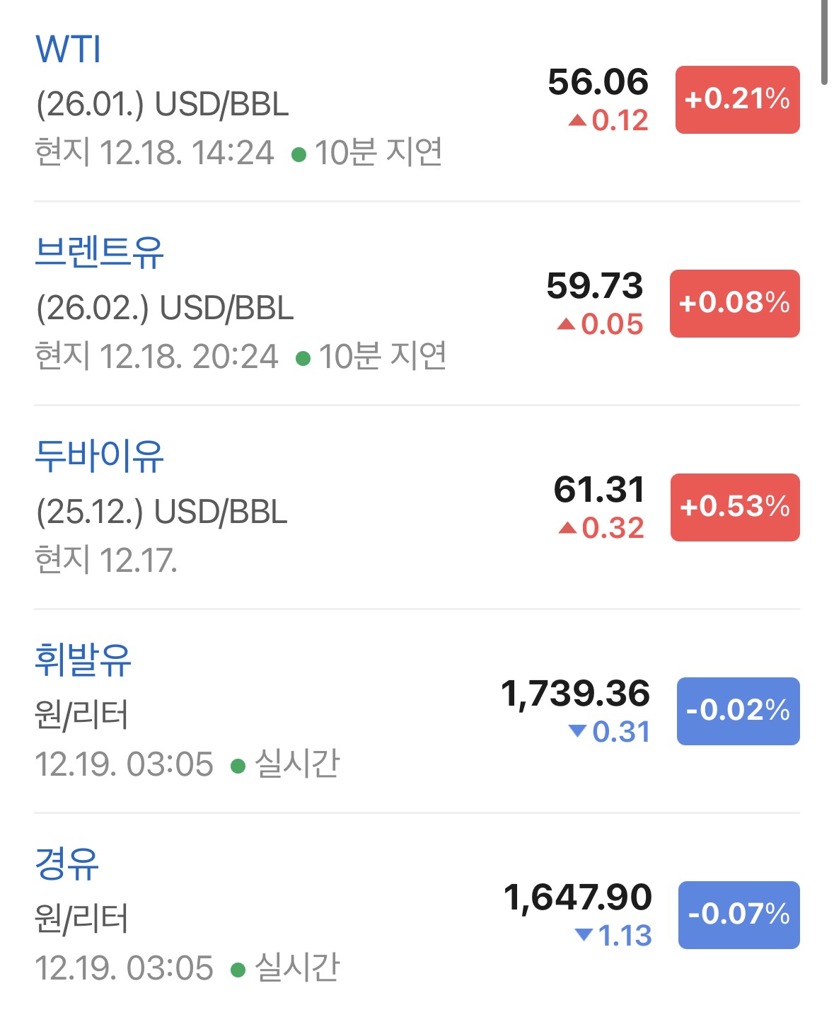 * 국제유가는 보합권의 미약한 상승이 나왔음. WTI 기준으로 56.06달러가 되며 0.21% 상승 중.