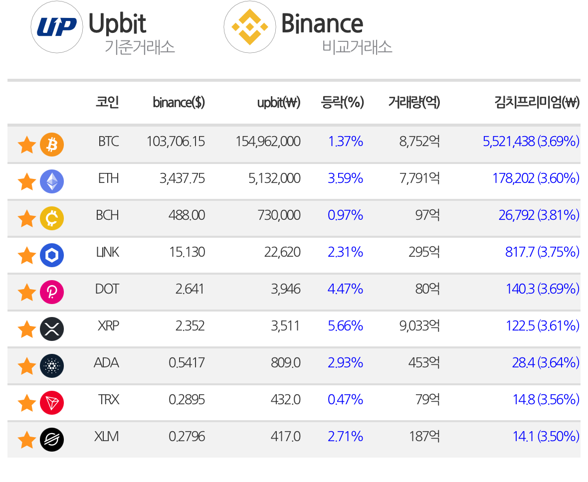 * 비트코인은 1억 5,551만원에 도착하며 전일 대비 1.72% 상승하였음. 럼프형이 비트코인을 옹호하는 발언 횟수를 늘리며 파이팅있게 밀어주는 모습에 믿고 올라오는 중. 김프는 3%대.
