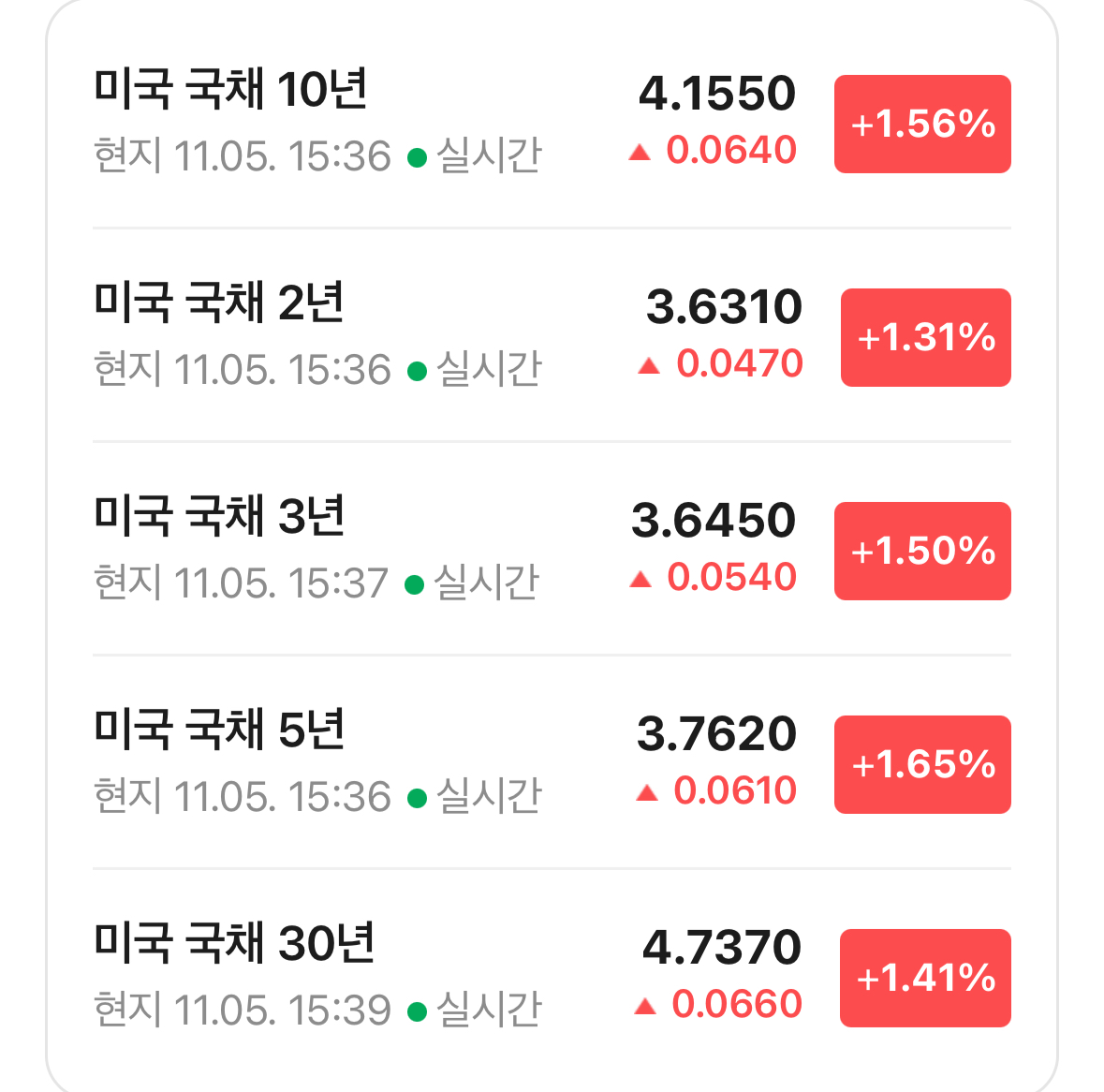 * 미국 국채 금리는 1% 중반정도의 상승이 나옴. 장단리차는 0.516 포인트로 10년물이 조금 더 강함.