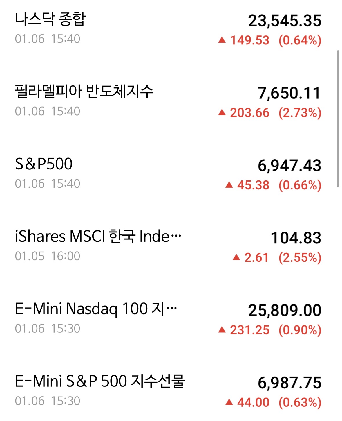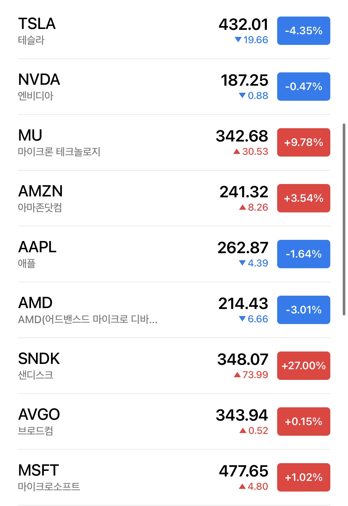 * 나스닥은 0.64% 상승하고 있음. 엔비디아 사장인 젠슨황이 피지컬 AI를 이야기 하면서 더 자세한 히스토리 활용을 위해 이제는 GPU뿐만 아니라 SSD업체에게 버프를 주면서 샌디스크가 27%나 오르고 있음. 물론 AI는 계속된다는 이야기니 마이크론도 9.78% 상승. 아마존도 3.54% 상승중. 테슬라가 4.35% 하락, AMD가 3.01% 하락하면서 청개구리 포지션임.