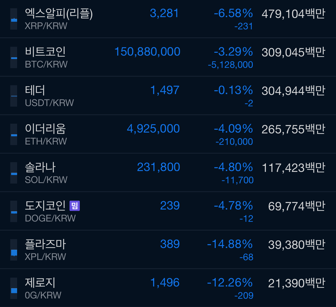* 비트코인은 1억 5,088만원까지 내려오며 3.29% 떨어짐. 김프가 3%정도 차이가 생기니 우리도 해외도 코인에 대한 투심이 좋지 않은 듯.