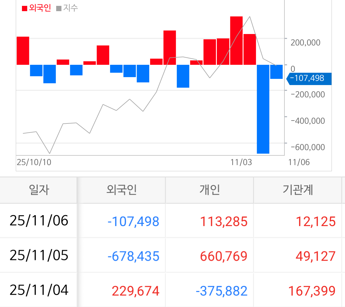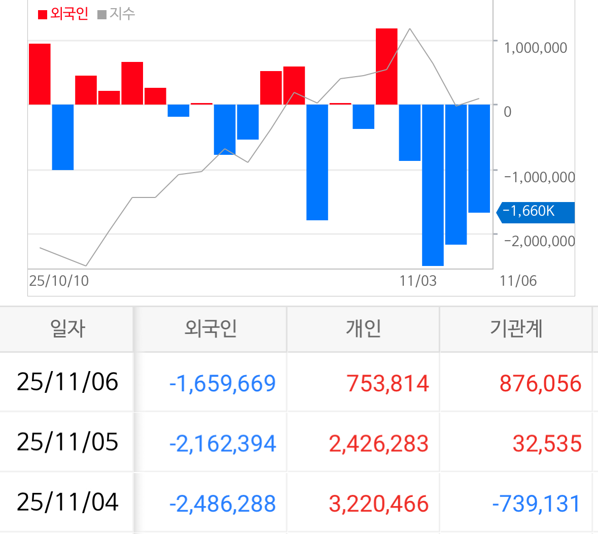 * 어제 코스피에서 버거형은 1조 6,600억 가량을 던지며 4일간 7조가 넘는 하락 폭포 장벽을 만들고 있음. 최근 믿을 수 없는 상승을 구경하게 하더니 믿을 수 없는 물량을 연속으로 던지는 모습도 구경하게 하니 이게 인생인가 싶음. 주식엔 위든 아래든 장담하지 말라는 말을 곱씹는 중.