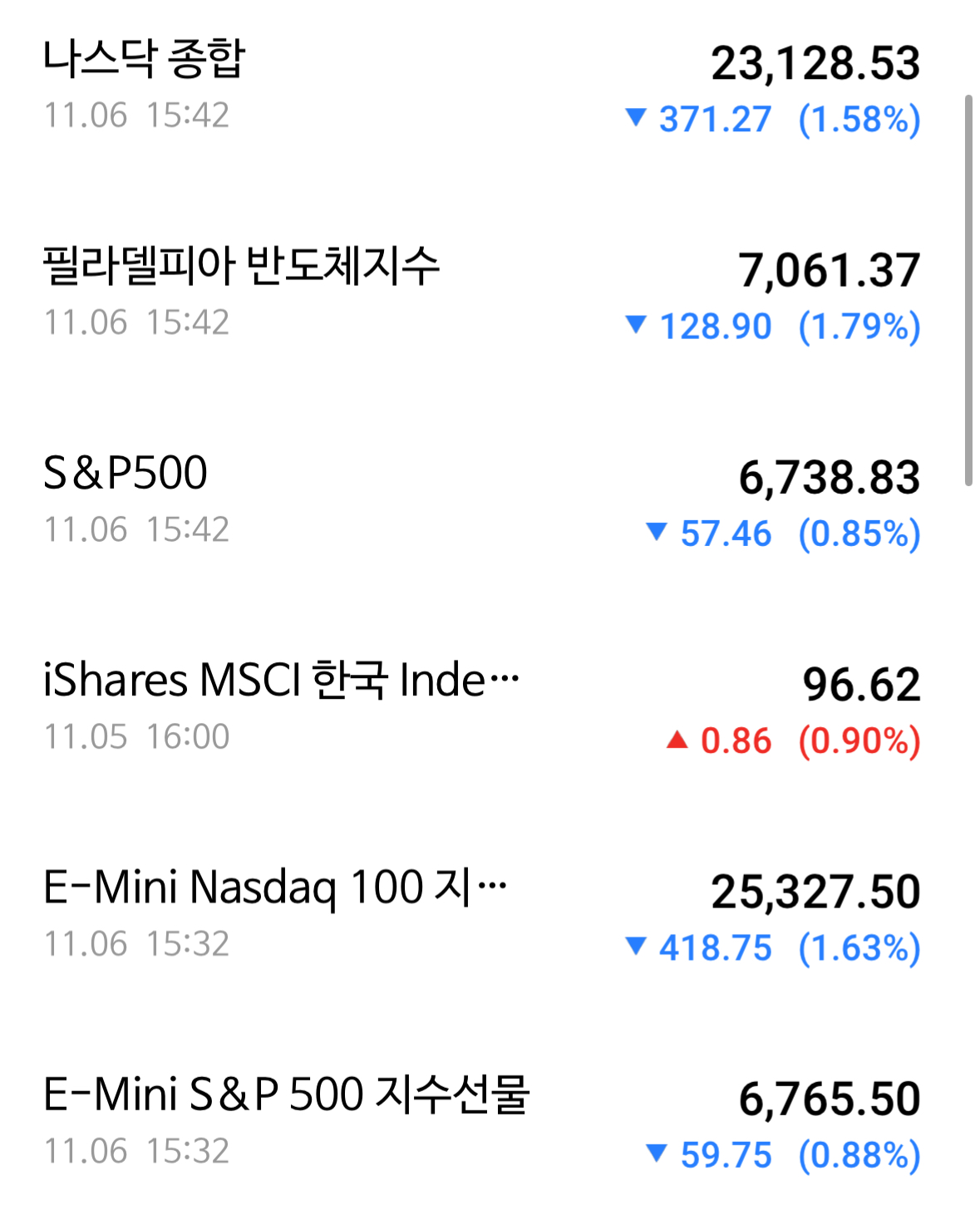 * 나스닥은 1.58% 하락하고 있음. 테슬라 3.66%, 엔비디아 3.73%, AMD 7.12% 등 거래대금 상위 종목들이 우수수 떨어져 버렸음.