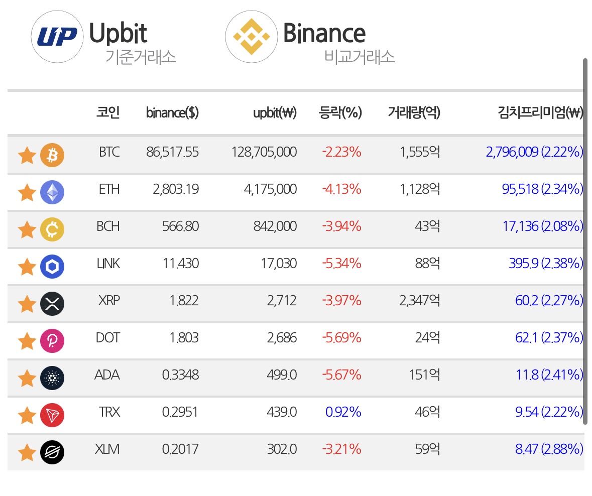 전일 대비 -2.38% 하락하며 1억 2,851만 원 수준까지 내려온 상태다.