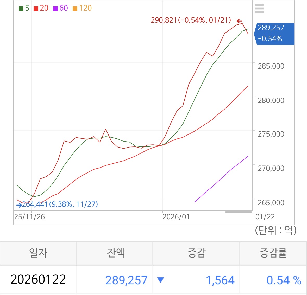 금요일 하루에만 2조 원가량 증가, 또 한 번 신고가 영역을 갱신했다.